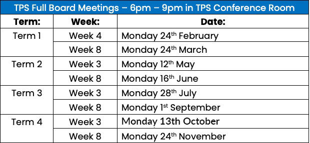 As noted above this year is the triennial Board election year. Board terms at TPS are 3 years and our next election will be on the 10 September 2025. Additional sessions to find out more will be shared leading up to our elections.